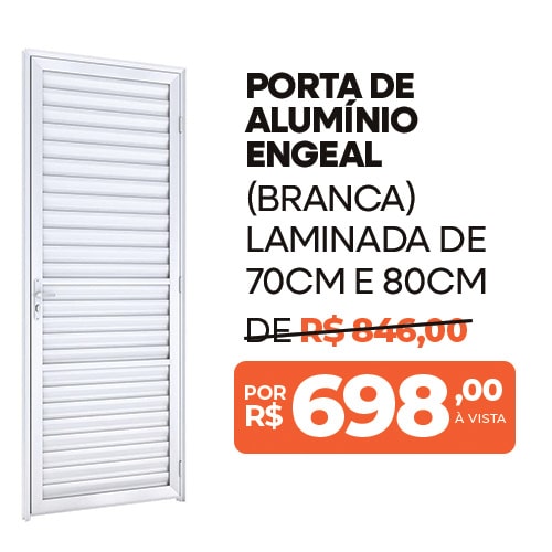 Beleza, segurança e durabilidade em um só produto. A porta de alumínio Engeal na cor branca, modelo lambri com puxador, é ideal para quem busca um visual moderno e resistente. Com medidas de 2,10x1,00, é perfeita para entrada ou áreas externas. Qualidade que valoriza o seu projeto!